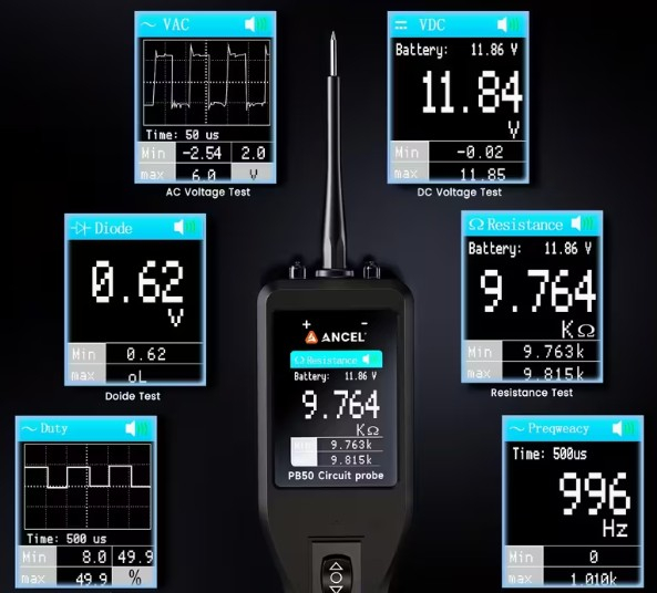 С помощью тестера датчиков вы можете проверить сигналы напряжения и заземления в типичной цепи постоянного тока. Однако особенность в том, что вы также можете использовать его для отправки сигналов напряжения и заземления. Он работает как тест светильник, который может питать цепи или обеспечивать хорошо известное заземление. Таким образом, вы можете эффективно тестировать компоненты и схемы, не вынимая старые зажимы типа «крокодил» и перемычки. Вы можете запитать или заземлять цепь прямо через верхнюю часть устройства.