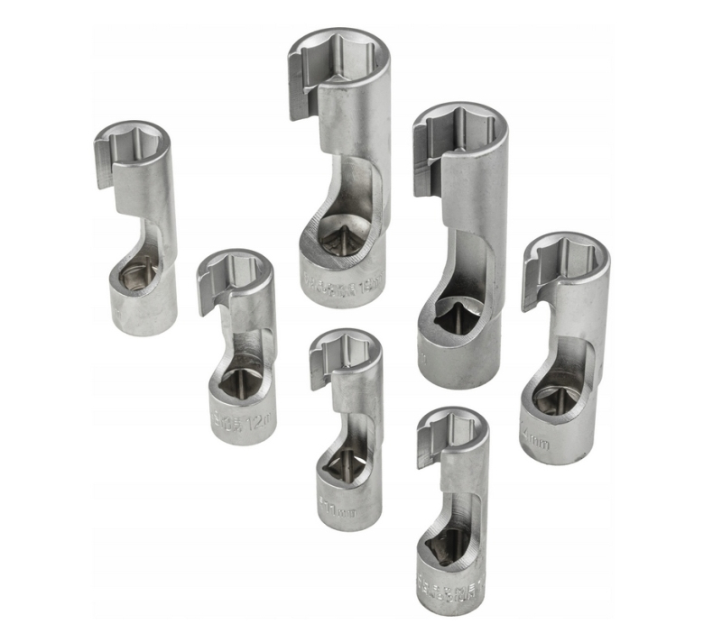 Професійний набір відкритих головок, призначений для встановлення та зняття датчиків температури, лямбда-зондів, термовимикачів та інших компонентів із проводами. Спеціальний виріз дозволяє працювати без від'єднання дротів - ідеально для важкодоступних місць.