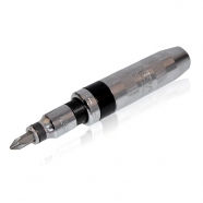 Викрутка ударно-поворотна призначена для монтажу та демонтажу різьбових з'єднань з додатковим зусиллям, які неможливо докласти до стандартних викруток. Ця модель укомплектована змінними бітами в кількості 6 од. Насадки призначені для робіт з відгвинчування та вкручування шурупів і саморізів з різними формами капелюшків. А для зберігання та транспортування викрутка HT-0431 з насадками укомплектована в металевий бокс. Дана модель, як і викрутка HT-0430 та інші аналоги, має приєднувальний квадрат розміром 1/2" ;. Тому можна відразу сказати, що викрутка має багатозначну дію по роботі з різьбовими з'єднаннями. Застосовуючи торцеві головки з квадратом 1/2, можна так само швидко і просто зривати застарілі, прикипілі болти і гайки. За аналогією можна і закручувати «намертво» різьбові з'єднання. Звідси і назва викрутки – ударно-поворотна (з реверсом). У комплекті іде стандартна головка 1/2" під викруткові насадки та біти. Торцеві головки купуєте окремо.