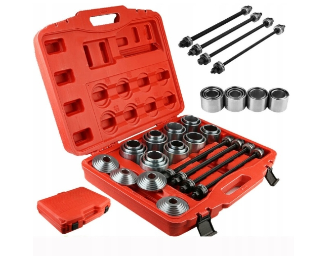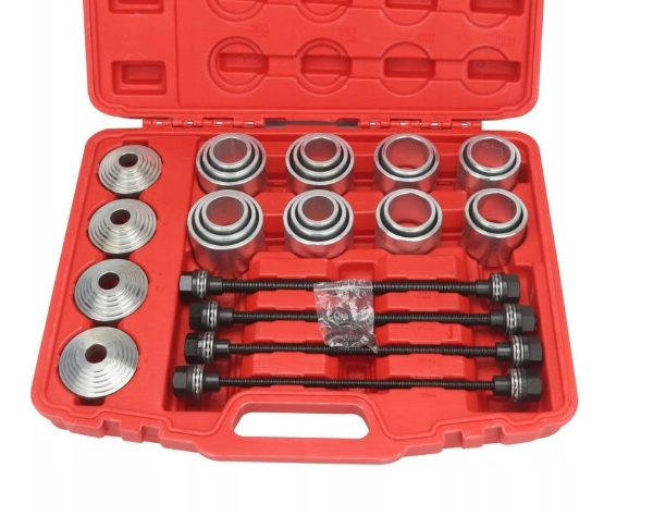 Универсальный набор используется для снятия и установки сайлентблоков и резиновых втулок.